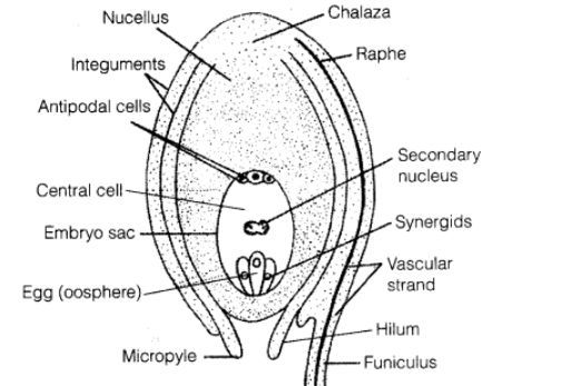 Maths Physics Chemistry Biology. Each ovule consists of nucellus surrounded by two integuments and a stalk or funiculus. With a neat labelled diagram describe the parts of a typical angiosperm ovule.